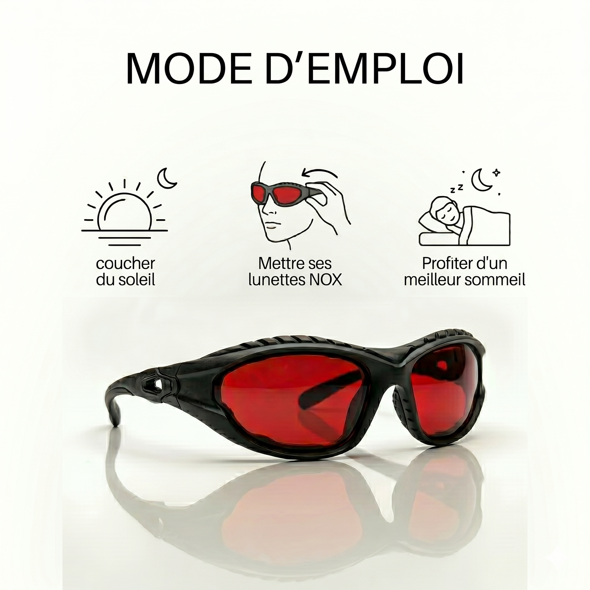 Chaque soirée, tes écrans envoient un signal de lumière artificielle intense à ton cerveau. NOX Eclipse transforme immédiatement cette lumière en teinte rouge tamisée, beaucoup moins stimulante.